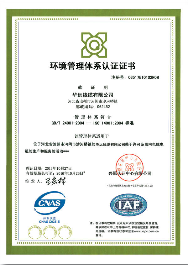 環境管理體系認證證書