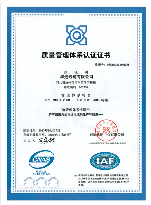 質量管理體系認證證書