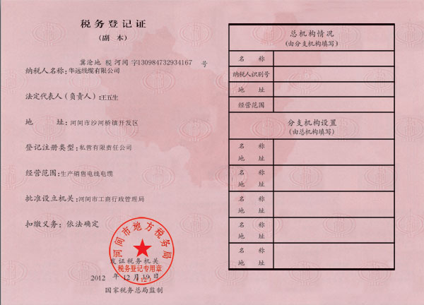 稅務登記證副本